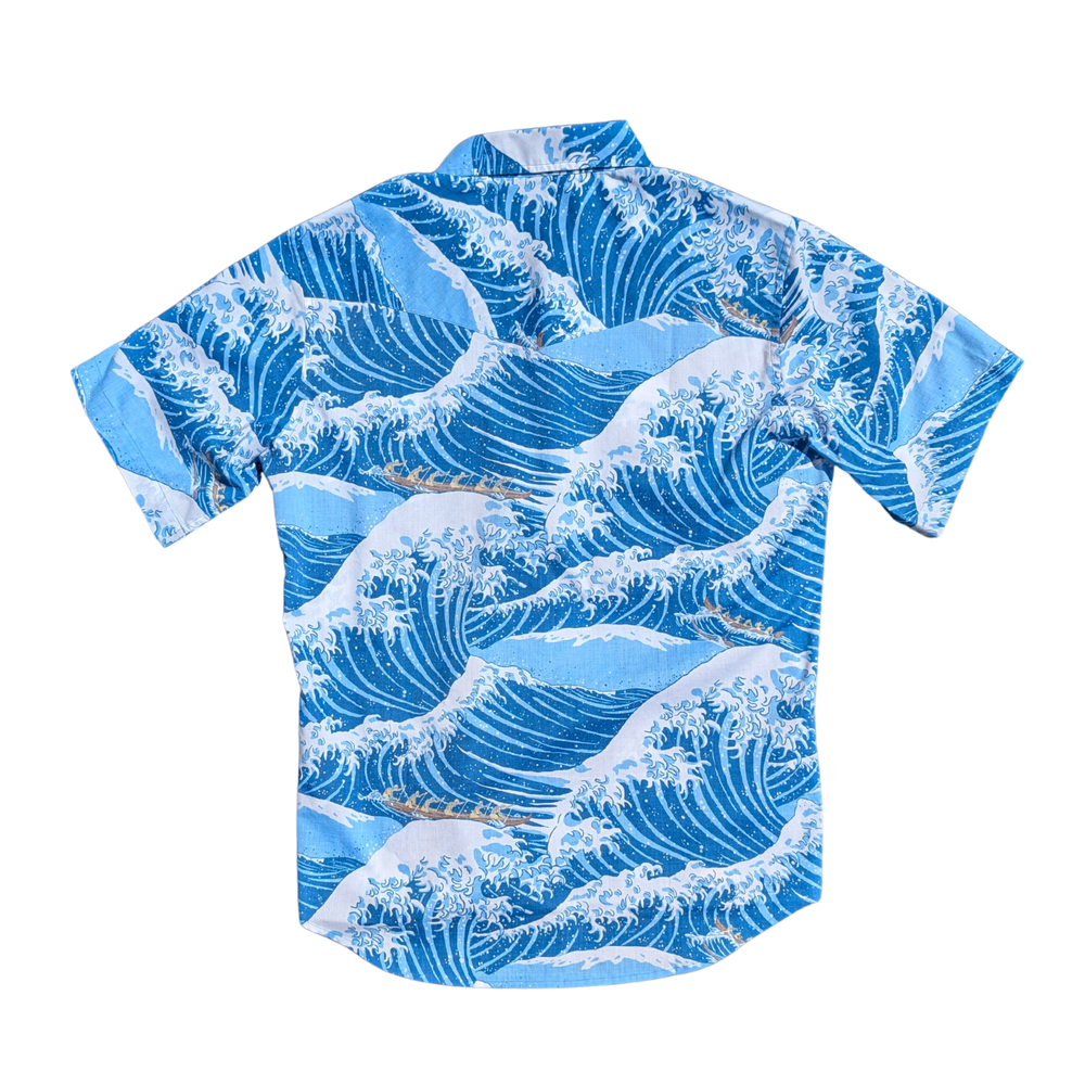 Our Alenuihaha print is inspired by the woodblock prints of Japanese artist Katsushika Hokusai (1760-1849). Alenuihaha tells the story of the Big Island outrigger canoe paddlers brave enough to attempt the Alenuihaha Channel, one of the most dangerous stretches of water on earth.