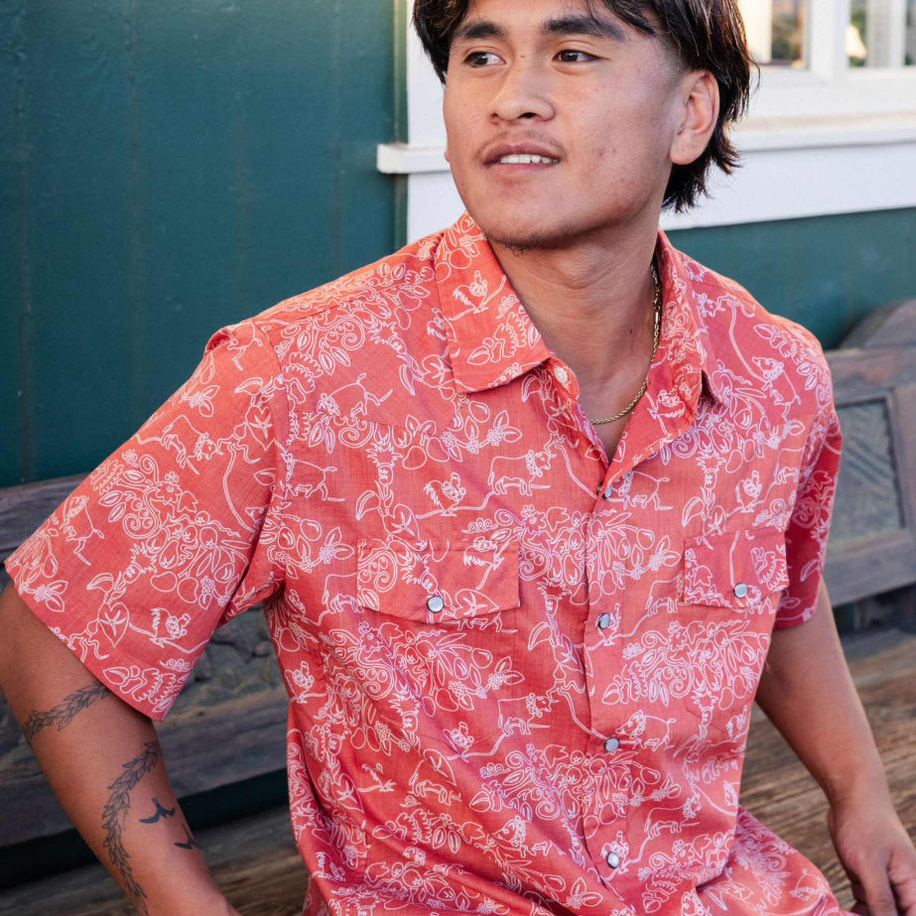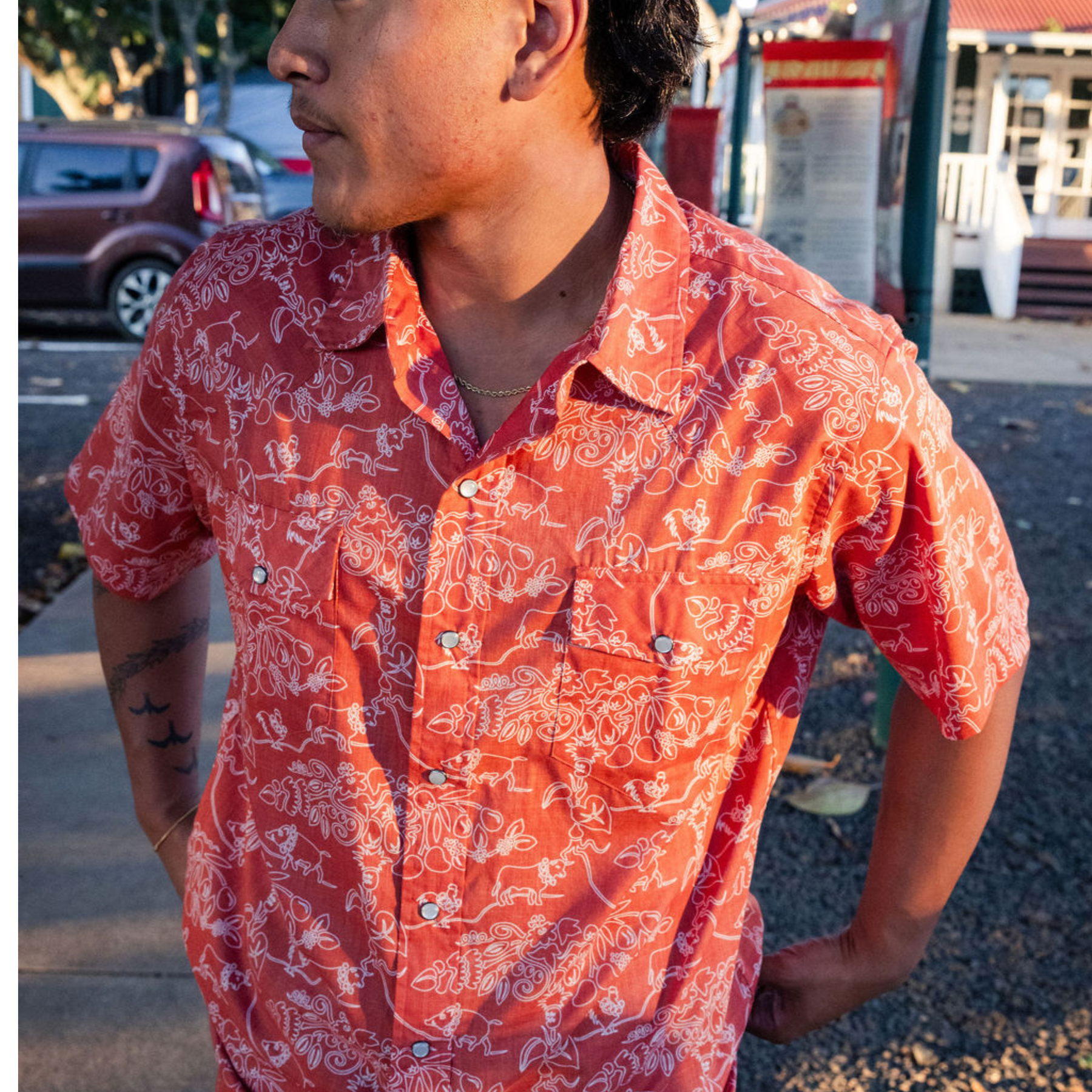 This original print tells the story of the Luau, before everything gets on the table. Perfect for wearing to a Luau. Or just to cook or eat a nice dinner. Or because the print is subtle, pretty much anywhere.