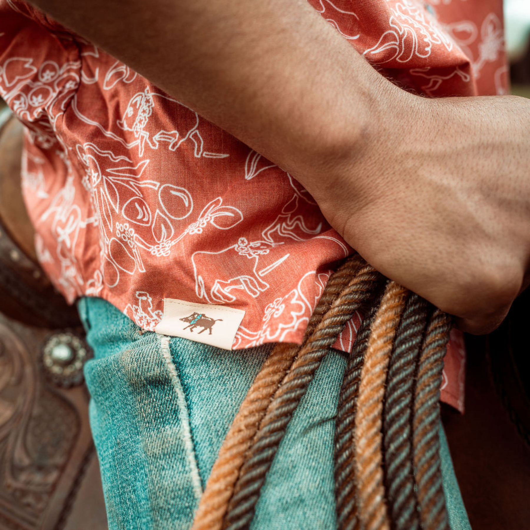 Our Cowboy Cloth is lightweight, breathable and quick drying. Super soft, yet so tough it scares wrinkles away. 60% cotton / 40% poly.