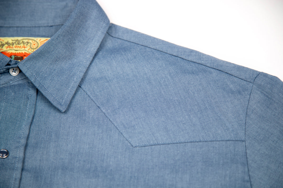 Believe it or not, western and Aloha shirts have been linked since the early days of each style. In the 1940s, Rockmount already was making western shirts with prints that would have made great Aloha shirts, except the motifs were from scenes of the western frontier. While we mix things up a bit to create our own take on the style, our western shirts have some or all of the following traditional features: